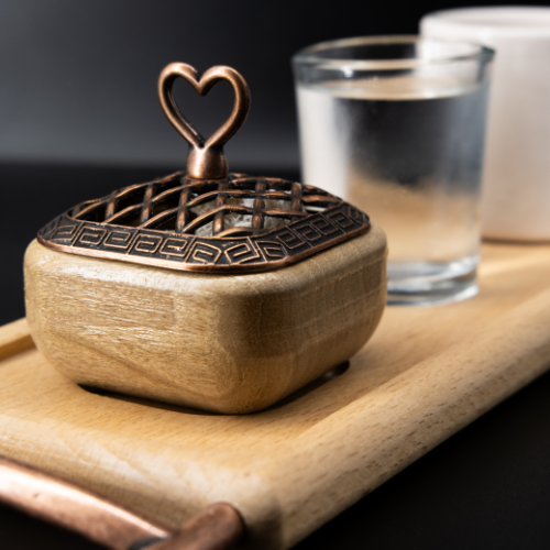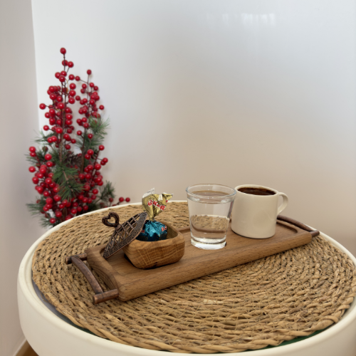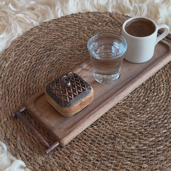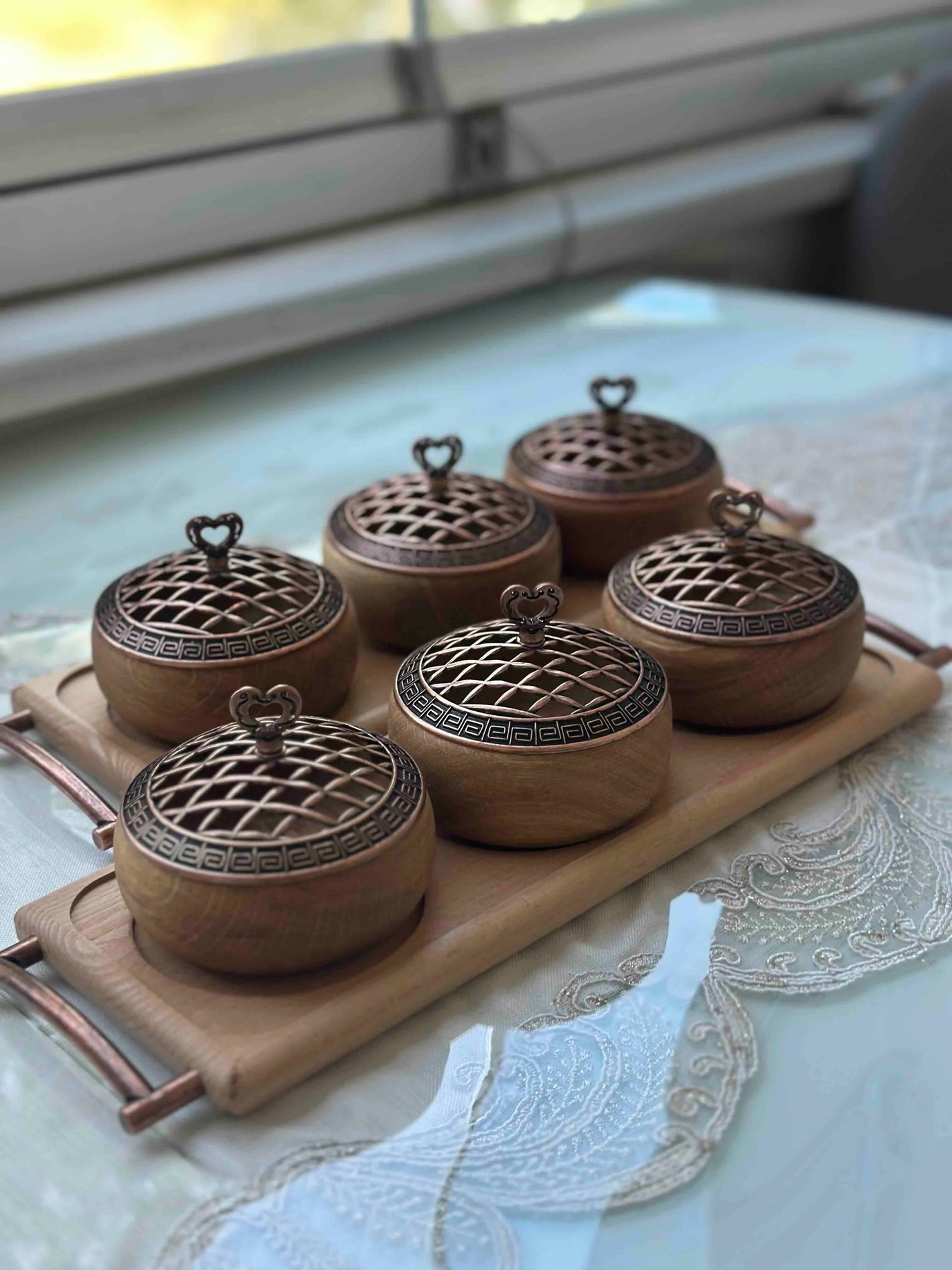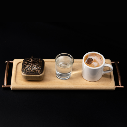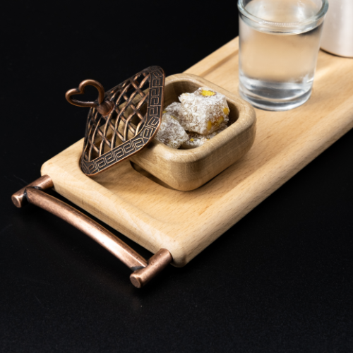 %100 Meşe ve Bakırın zarif uyumundan doğan Zeraf, kahvenizin yanında sunduğunuz tatlıları ve ikramları, geleneksel bir şıklıkla bütünler.