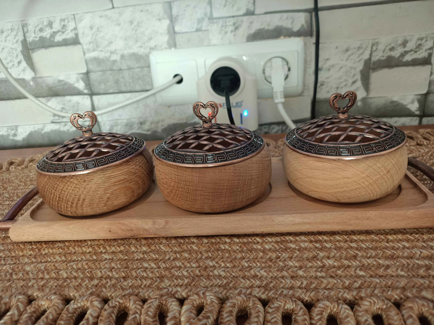Kuruyemiş kaselerin meşe oluşu çok iyi olmuş ,ele alınca anlıyorsun zaten kalitesini.Eşim için aldım severek kullanıyor. Nemle bezle temizlemenizi öneririm